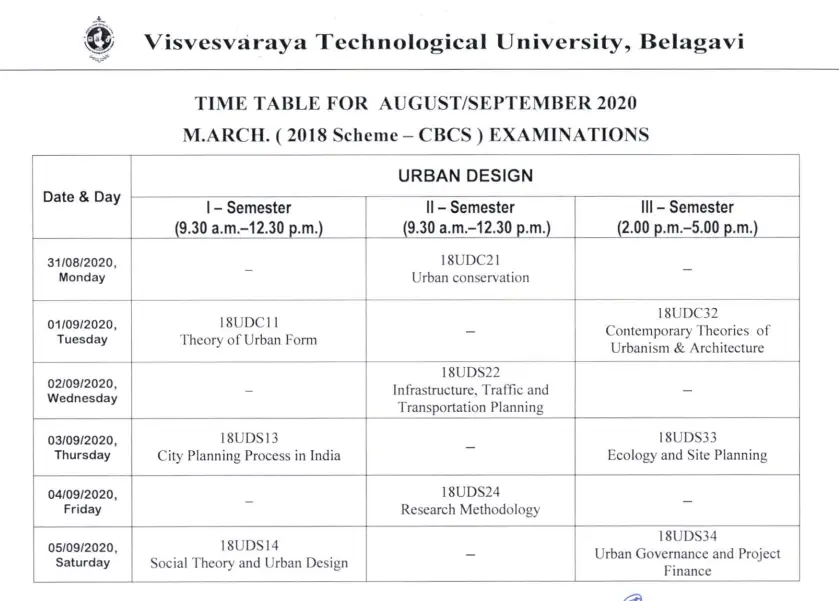 VTU BArch/ BPlan Dec 2023/ Jan 2024 Exams to be held on 29th and 31st Jan 2024 are rescheduled. Below are the details: